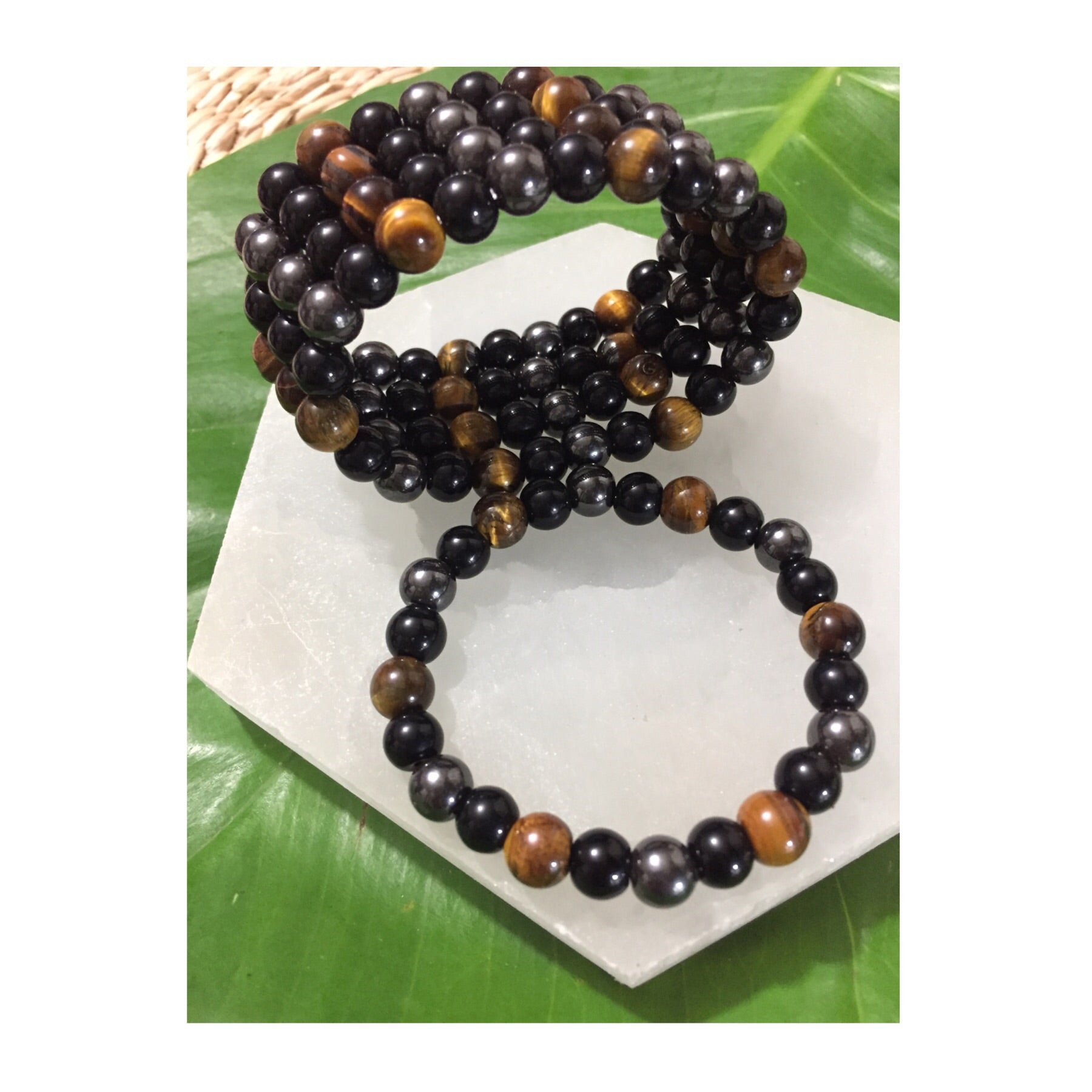 Tiger Eye, Obsidian & Hematite Healing Bracelet Spandex. Comes in a box perfect for a high vibrational gift.